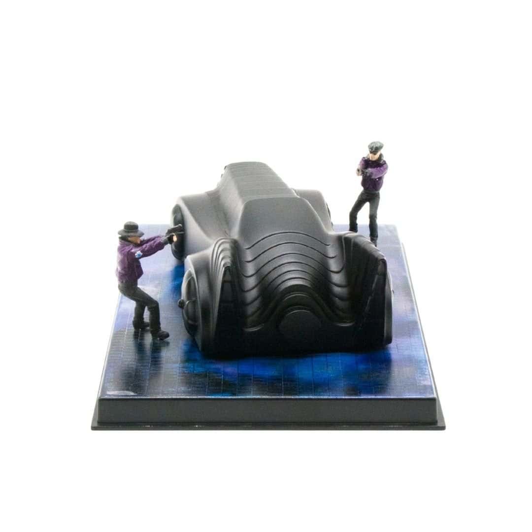 En el universo gótico creado por Tim Burton, Batman no podía simplemente aparcar su coche y cerrar con llave. La solución de diseño de Anton Furst fue el sistema de «Escudos» (Shields). Esta miniatura captura ese momento específico: cuando el vehículo repliega su carrocería habitual y se cubre con capas de blindaje cerámico deslizante. Es la forma que tiene el Batmobile de decir «ni lo intentes» a los criminales de Gotham. Esta versión es famosa por la escena en el callejón donde Vicki Vale ve el coche por primera vez, o el momento dramático en la planta química de Axis Chemicals.